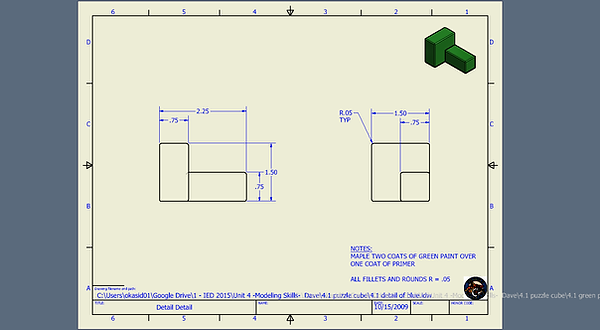 Autodesk Inventor was used to model three dimensional images of the parts sketched earlier
